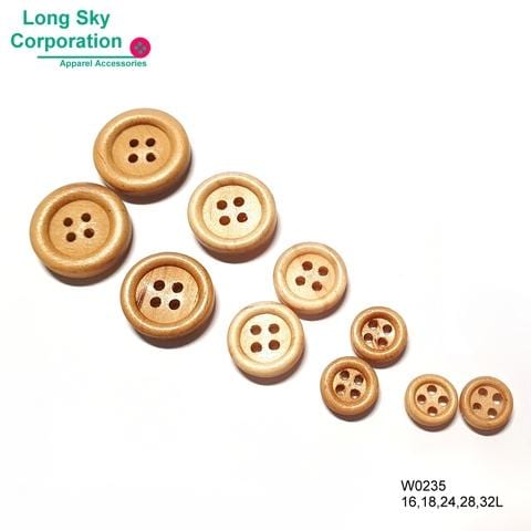 (#W0235) Bouton artisanal en bois naturel à bord rond à 4 trous